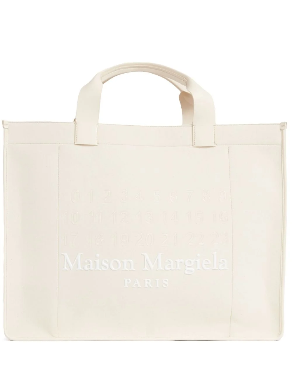 large Cabas tote bag Highlights - White - Cotton - Textured finish - Magnetic fastening - Two flat top handles - Single shoulder strap - Signature numbers motif - Main compartment - Internal logo patch - Internal patch pocket Made in Italy Composition Outer: Cotton 100%