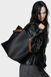 The Maison launches the Dress-age handbag for SS25, crafted from soft pebbled calfskin. With an equestrian spin, the large handbag features classic leatherwork and refined lines, combining unconscious glamour with gestural design. It follows a trapezoid shape with contrast dual-wear strap detail. The studded base allows the bag to stand, and the inner is adorned with the logo. Maison Margiela's signature, the four stitches, appear at the back; the opposite of a label. Product Details Item ID SB1WD0022P7268HA755 Body: 100% Calf Leather Contrast: 100% Calf Leather Lining: 100% Goat Leather Inside: 100% Calf Leather Inside: 100% Polyester Metallic hardware Tote bag in soft leather Trapezoid shape Short handles in leather Adjustable leather strap on the side with a buckle Vertical seam running down the front and back Metal feets Inside pocket Magnetic closure buttons with Maison Margiela logo engraving Four stitches at the back Clean with Maison Margiela leather kit Made in Italy