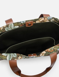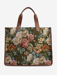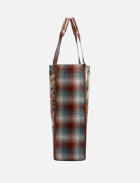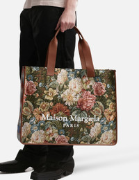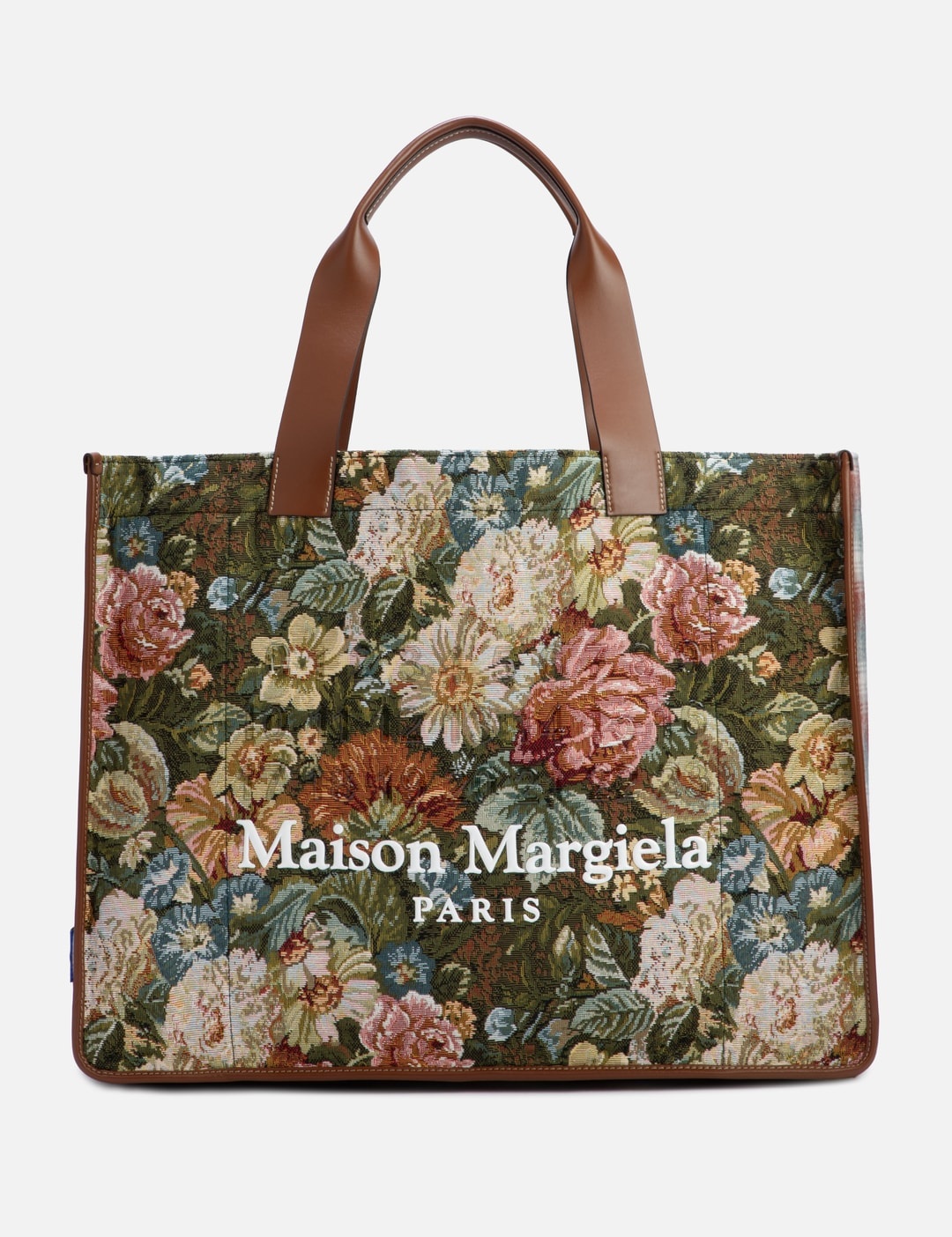 - Maison Margiela - Cabas Shopping Bag Large - Made of tapestry floral fabric, Pendleton check wool and leather - Leather top handles - Button closure - Inner pockets - Maison Margiela logo on the front - Cotton lining - Made in Italy - Color: Green Floral/ Light Blue/ Chestnut - Material: Body: 65% Polyester, 25% Cotton, 7% Acrylic, 3% Other Fibers Contrast: 100% Wool Contrast: 100% Calf Leather Application: 100% Polyurethane Inside: 100% Cotton - See more Tote Bags, Bags and Accessories SIZING Approximate dimensions: - Height: 37cm - Width: 48cm - Depth: 11cm - Handle Length: 16cm - Strap Length: 29cm