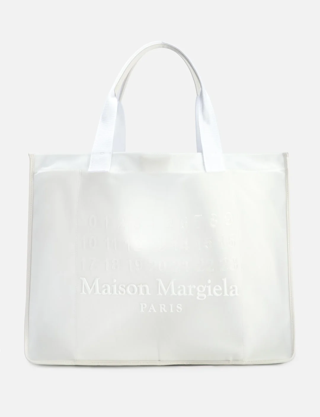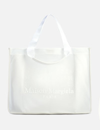 - Maison Margiela - Cabas Shopping Bag Large - Top carry handles - Snap-button closure - Embroidered brand logo - Interior pocket - Topstitching design - Silver-tone hardware - Color: White - Material: 100% Polyamide - See more Tote Bags, Bags and Accessories SIZING Approximate dimensions: - Height: 37cm - Width: 48cm - Depth: 11cm - Handle Length: 16cm - Strap Length: 29cm