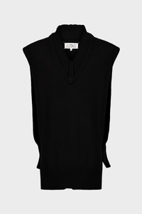 This oversized knit vest in jersey has a layered V-neck and ribbed trims for added texture. At the back, four white stitches show the hand of the Maison: the opposite of a label. Gauge 5. Product Details Item ID SI1TH0001S18064900F Composition: 46% Wool, 31% Linen, 23% Cotton V-neck vest Ribbed trims Decortique details Four stitches at the back Gauge 5 Made in Italy