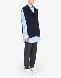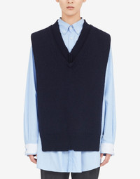 V-neck knit tabard with Décortiqué details to hem and neck – from the Authentic Shetland archetypes design code. The Maison's four-stitches moniker adorns the back. Gauge 5. Made in Italy. Item details 100% Wool Knitted Medium-weight knit Solid color