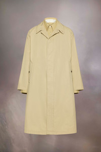 The trench coat is crafted from cotton; a study in timeless style. Cut below the knee, it features a classic collar and hidden button placket for a clean aspect. The minimal aesthetic is added to with subtle side pockets, tonal buttons at the cuffs and a simple back vent. Maison Margiela's signature, the four stitches, appear at the back; the opposite of a label. Product Details Item ID S50AH0137M35354113 Primary Fabric: 100% Cotton Secondary Fabric: 100% Cotton Lining: 100% Cotton Cotton trench coat Double collar with button tab detail Long sleeves with adjustable cuff tabs Side pockets Four stitches at the back Made in Italy Model is 185 cm tall and wears a size 46.
