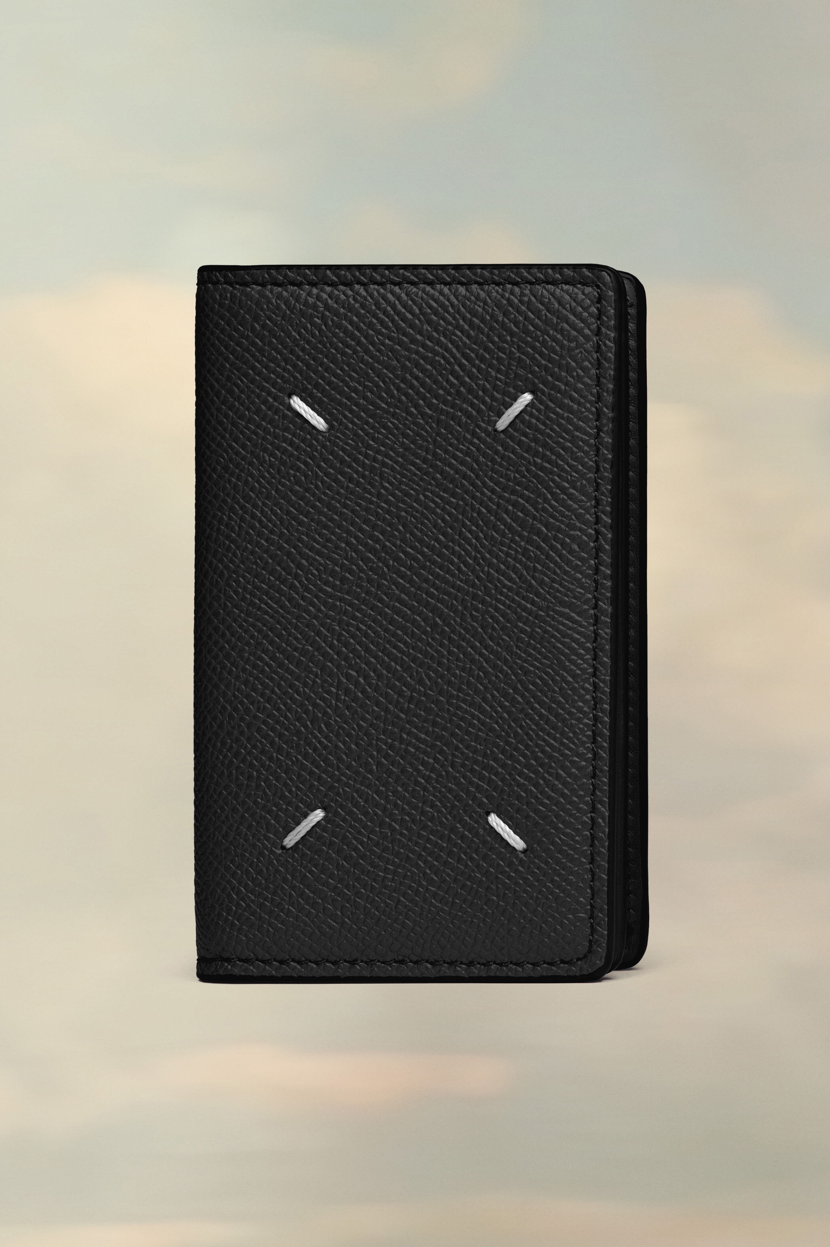 Crafted from grainy leather, this card case is finished with an embossed logo inside. Maison Margiela's signature, the four white stitches, appear at the front. Product Details Item ID SA3VX0005P4745T8013 Outer: Small grainy calf leather Inside: Calf leather Four stitchesat the front Flat pocket at the back Snap button closure Inside logo stamping Inside flat pocket Two inside card slots Clean with a specific leather cleaner product and a humid microfiber cloth Made in Italy 11 cm x 6,7 cm/4,3 in x 2,6 in (Length x Height)