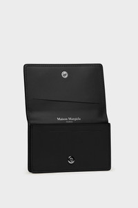 Crafted from grainy leather, this card case is finished with an embossed logo inside. Maison Margiela's signature, the four white stitches, appear at the front. Product Details Item ID SA3VX0005P4745T8013 Outer: Small grainy calf leather Inside: Calf leather Four stitchesat the front Flat pocket at the back Snap button closure Inside logo stamping Inside flat pocket Two inside card slots Clean with a specific leather cleaner product and a humid microfiber cloth Made in Italy 11 cm x 6,7 cm/4,3 in x 2,6 in (Length x Height)