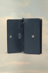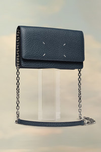 In embossed grainy leather with a chain, the wallet has a snap button closure and zipped inner section. It features the numeric logo inside. Maison Margiela's signature, the four stitches, appear on the flap; the opposite of a label.