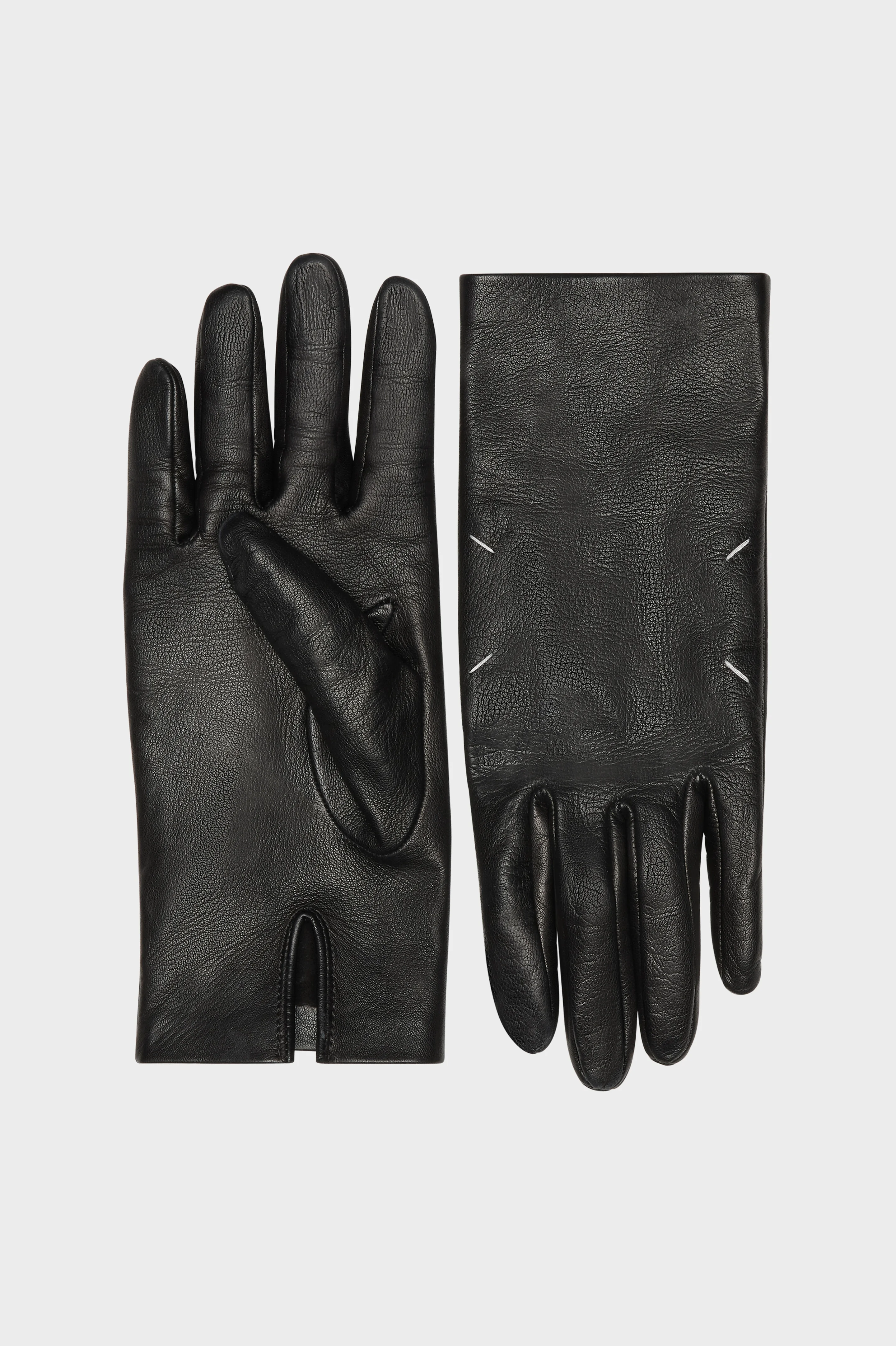 These long leather gloves are crafted in smooth, supple leather with a streamlined silhouette and minimal detailing. A discreet vent at the palm adds flexibility, while Maison Margiela’s signature, the four stitches, appear on the front; the opposite of a label. Product Details Item ID S51TS0074SY1622900 Primary fabric: 100% Ovine Leather Gloves in ovine leather Side slit at the wrist Four stitches on the top Made in Italy