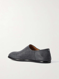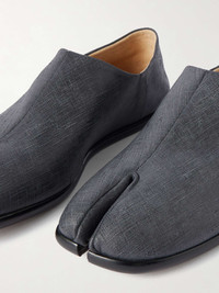 Inspired by 15th-century Japanese footwear, Maison Margiela's split-toe design debuted in 1989 and has since earned cult status among the most fashion-forward. These textured-leather 'Tabi' loafers have been made in Italy and feature a signature white stitch at the heels. Size & Fit - Fits true to size. Take your normal size - Narrow at the top of the foot - European sizing Details & Care - Charcoal melange textured-leather (Calf)