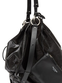 leather tote bag Highlights - Black - Removable pouch - Signature four-stitch logo - Single top handle - Adjustable shoulder strap Made in Italy Composition Outer: Calf Leather 100%