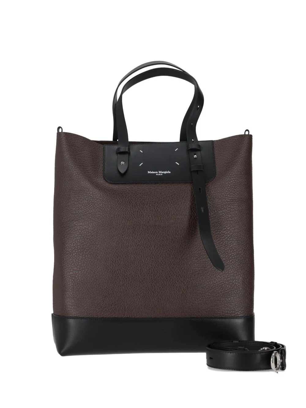 leather tote bag Highlights - Dark brown - Leather - Two top handles - Detachable strap - Panelled design - Logo detailing Made in Italy Composition Outer: Bovine Leather 100%