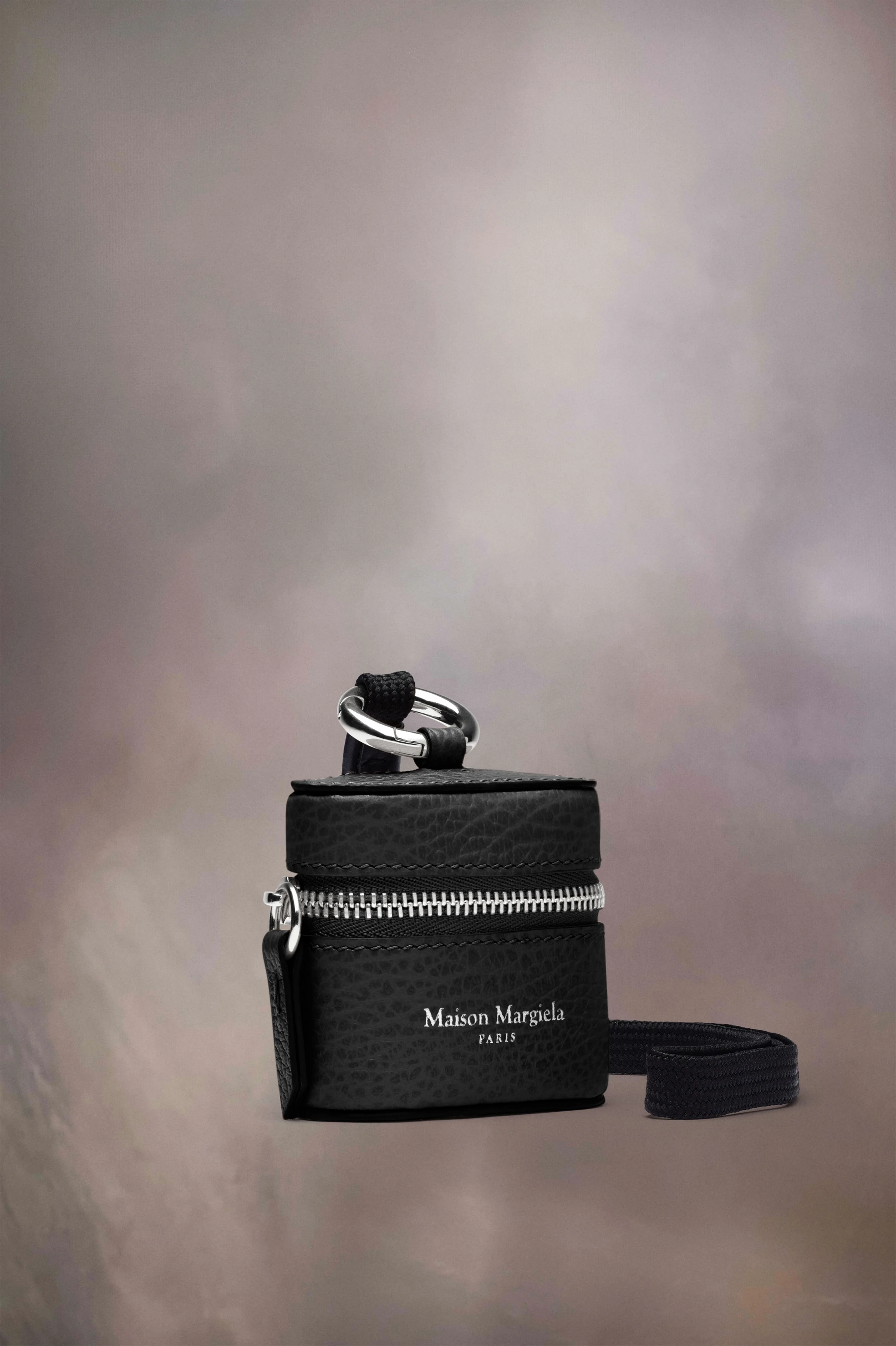 Crafted from embossed grainy leather, the AirPod case features the logo and a zip closure. It's complete with a lace and ring for ease of wear. Product Details Item ID SA1VZ0015P6421T8013 Body: 100% calf leather Inside: 100% calf leather Contrast: 100% polyester Grainy leather airpods case Detachable lace Zip closure Logo stamping at the front Made in Italy 6,5 cm x 2,7 cm x 5,8 cm/2,5 cm x 1 in x 2,3 in (Length x Width x Height) Lace drop: 40 cm/15,7 in