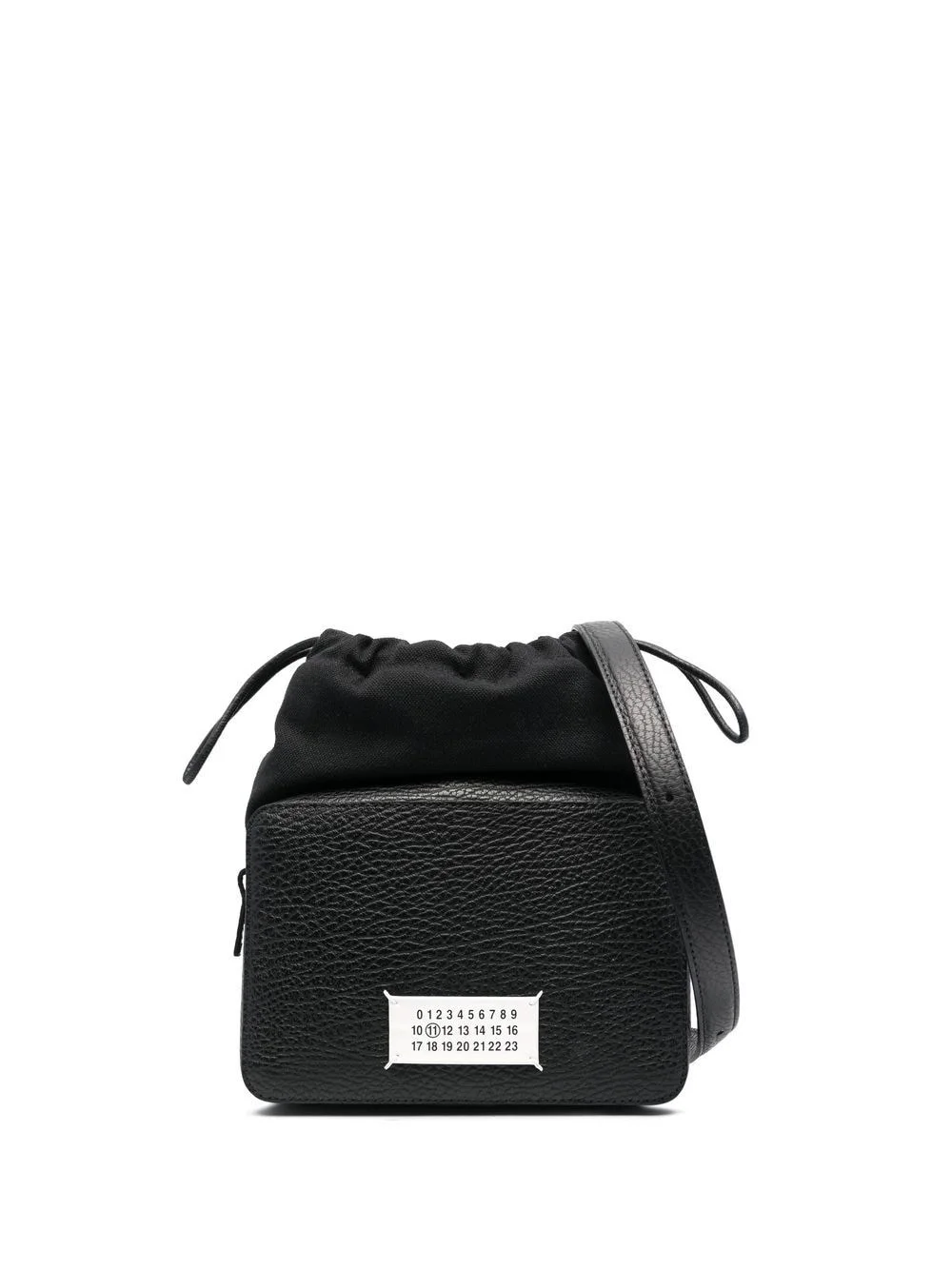 logo-applique crossbody bag Highlights - Black - Calf leather/cotton - Grained texture - Panelled design - Logo patch to the front - Detachable shoulder strap - Drawstring fastening - Main compartment Made in Italy Composition Outer: Calf Leather 100%, Brass 100%, Zinc 94%, Cotton 79%, Polyester 15%, other fibers 6%, Aluminium 4%, Ramie 2% Lining: Calf Leather 100%, Cotton 100% SIZE & FIT Model measurements Height 6 ft 1 in(1.85 m) Bust/Chest 35.82 in(91 cm) Hips 37.79 in(96 cm) Waist 29.13 in(74 cm) Measurement DEPTH 2.75 in(7 cm) HEIGHT 7.87 in(20 cm) STRAP 17.32 in(44 cm) WIDTH 7.87 in(20 cm)