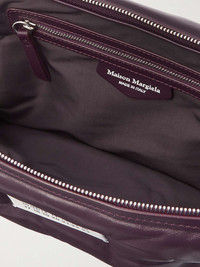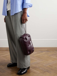 Maison Margiela's ongoing 'Glam Slam' collection is inspired by the thrill of dressing in a hurry. This messenger bag is made from leather that's quilted to resemble a travel pillow, though we wouldn't recommend resting your head against it. Inside, you'll find room enough for your wallet, sunglasses and a camera – we'll let you decide whether digital or film. Size & Fit - Min. Strap Length: 85cm / 33.5in - Max. Strap Length: 140cm / 55.1in - Height: 17cm / 6.7in - Width: 27cm / 10.6in Details & Care - Burgundy leather (Lamb) - Detachable shoulder strap - Internal zipped pocket - Fully lined - Zip fastening - Comes with dust bag