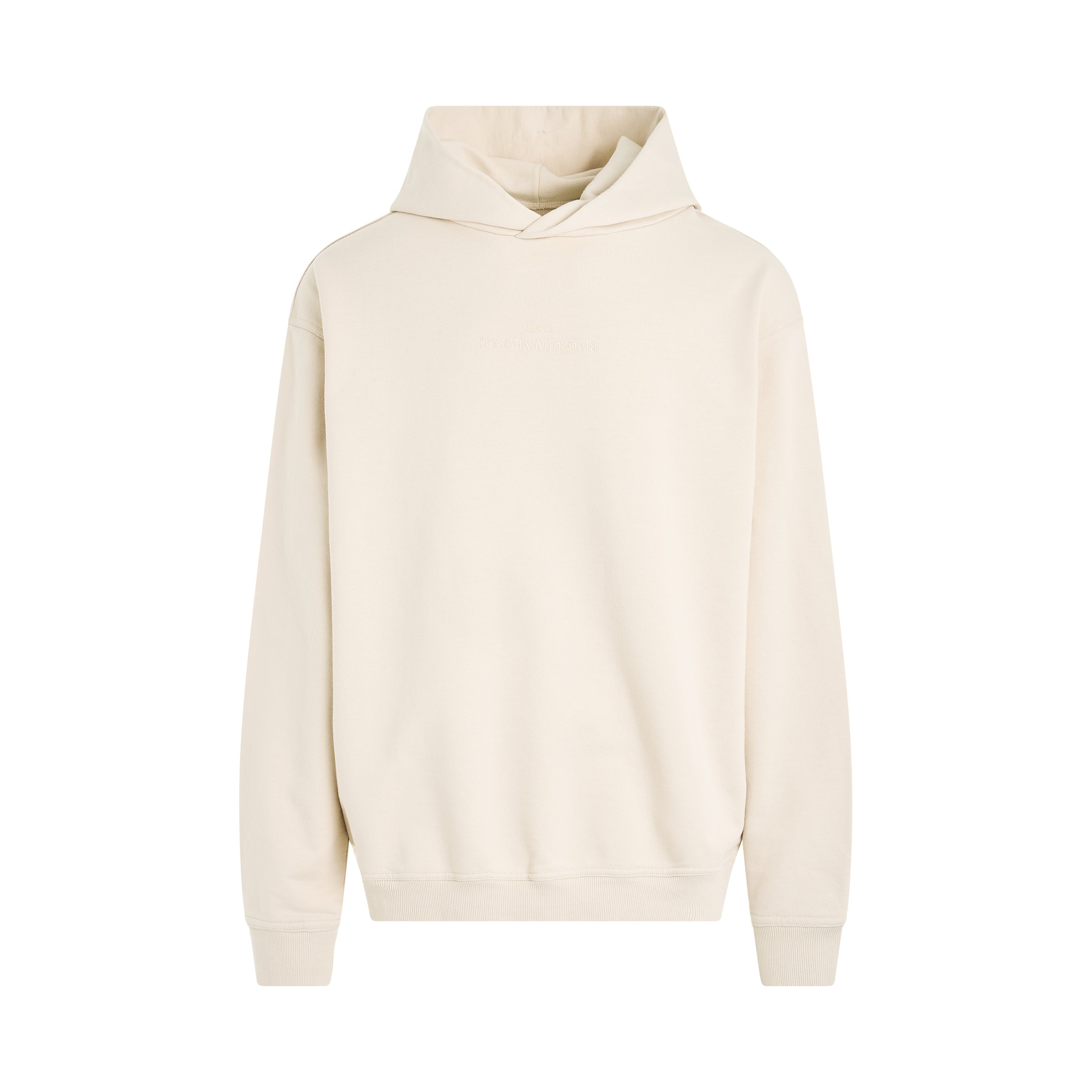 Upside Down Logo Hoodie in Beige