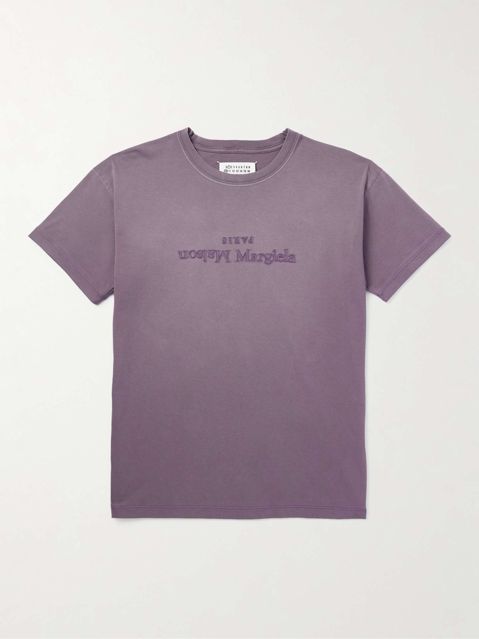 Maison Margiela's T-shirt is embroidered with an upturned version of the signature logo. It's made from cotton-jersey that's washed to give it a cool, faded appearance. Size & Fit - Fits true to size. Take your normal size - Designed for a regular fit - Lightweight, stretchy fabric - Model is shown wearing a M - Model measures: chest 38"/ 96cm, height 6'0"/ 183cm Details & Care - Purple cotton-jersey - 100% cotton - Machine wash