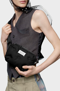 Constructed in nylon and calf leather, the Glam Slam sport body bag recalls the notion of unconscious glamour and evokes its association to ease, following the study into dressing and travelling rituals worldwide. The Glam Slam debuted in the SS18 show and has a quilted design which mimics matelasse – the style of hand-stitched quilts created in Marseilles, France. The design features supple rounded edges, a zip closure and the Maison’s numerical logo tab. It is carried by the contrast adjustable strap. Product Details Item ID SB2WG0011P1511T8013 Outer: Cordura fabric Application: 100% Calf leather Lining: 100% Polyester Polished metal hardware Adjustable shoulder strap Zip closure Quilted effect through heat sealing Logo label at the front Zip pocket at the back Inside zip pocket Inside logo stamping Made in Italy 14 cm x 10 cm x 20 cm/5,5 in x 4,7 in x 7,8 in (Height x Width x Length) Max. shoulder strap drop: 60 cm/23,6 in Min. shoulder strap drop: 30 cm/11,8 in A digital certificate provided by the Aura Blockchain Consortium guarantees the authenticity of this product. Discover more on auraluxuryblockchain.com/#about