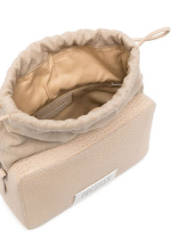 medium 5AC camera bag Maison Margiela's inventive approach to minimalist design is showcased in this shoulder bag. Decorated with a signature numbers patch, it features a canvas drawstring top that protrudes from the boxy silhouette, highlighting the brand’s distinctive aesthetic. Highlights - Beige - Calf leather - Grained texture - Signature numbers motif - Drawstring fastening - Top zip fastening - Main compartment Made in Italy Composition Outer: Calf Leather 100%, Cotton 79%, Polyester 15%, Other fibres 6% Lining: Cotton 100%, Calf Leather 100% SIZE & FIT Model measurements Height 6 ft 2 in(1.89 m) Bust/Chest 37.79 in(96 cm) Hips 37 in(94 cm) Waist 29.92 in(76 cm) Measurement DEPTH 2.75 in(7 cm) HEIGHT 7.87 in(20 cm) STRAP 17.32 in(44 cm) WIDTH 7.87 in(20 cm)