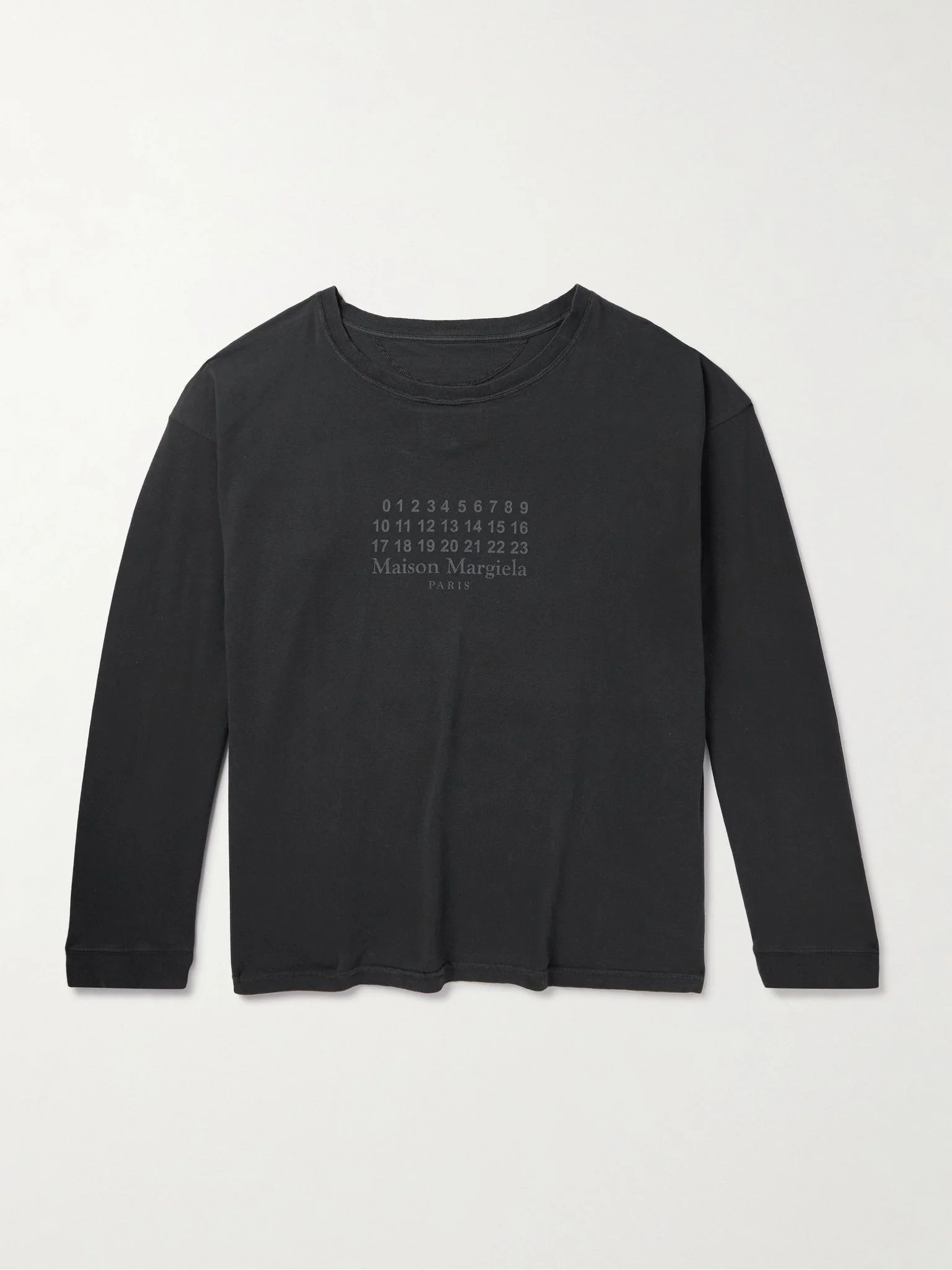 Maison Margiela's T-shirt is printed with zero to 23 at the chest – it's the shorthand for the brand's 'Artisanal' range. Cut in a loose shape, it's made from washed cotton-jersey and has a wide crewneck that sits on the shoulders. Size & Fit - Those who are above 6'1"/ 185cm may wish to take the next size up - Designed for a loose fit - Dropped shoulder seam - Lightweight, slightly stretchy fabric - Model is shown wearing a M - Model measures: chest 36"/ 92cm, height 6'2"/ 188cm Details & Care - Black cotton-jersey - 100% cotton - Machine wash