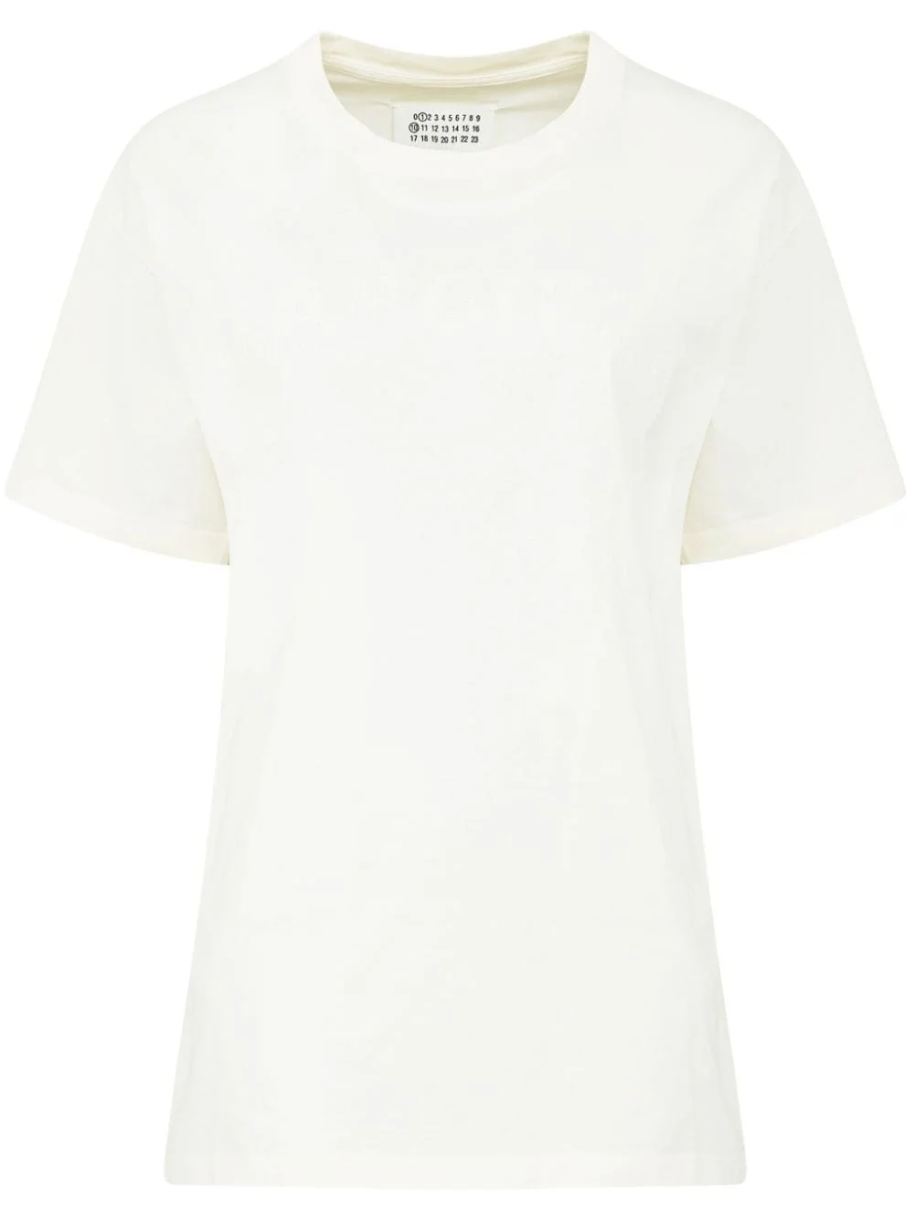 logo-print cotton T-shirt Highlights - Ivory white - Cotton - Crew neck - Logo print to the front - Drop shoulder - Short sleeves - Straight hem Made in Italy Composition Cotton 100%