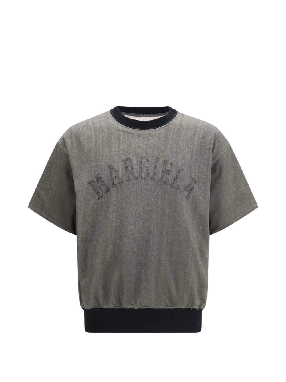 logo-print short-sleeved sweatshirt Highlights - Grey - Logo print - Ribbed trims - Short sleeves - Crew neck - Stitch detail Made in Italy Composition Viscose 53%, Cotton 47% Washing instructions Read Manufacturer Guidelines