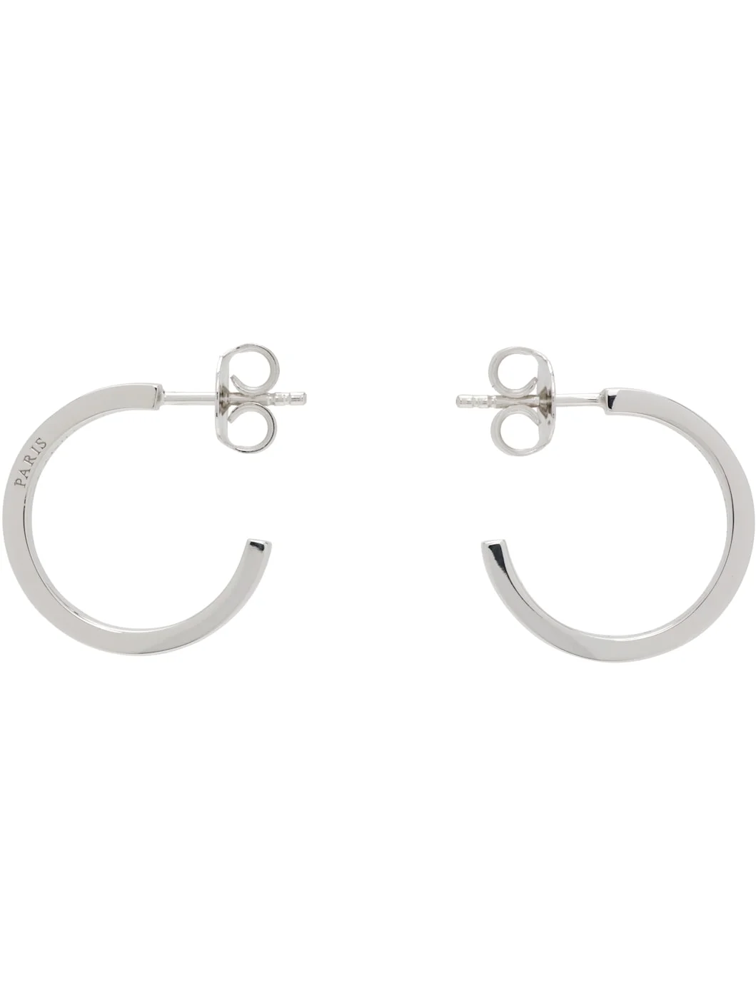 Pair of open hoop earrings in sterling silver. · Logo engraved at face · Post-stud fastening · D0.75" Supplier color: Polished silver 925 sterling silver. Made in Italy 261168M144007