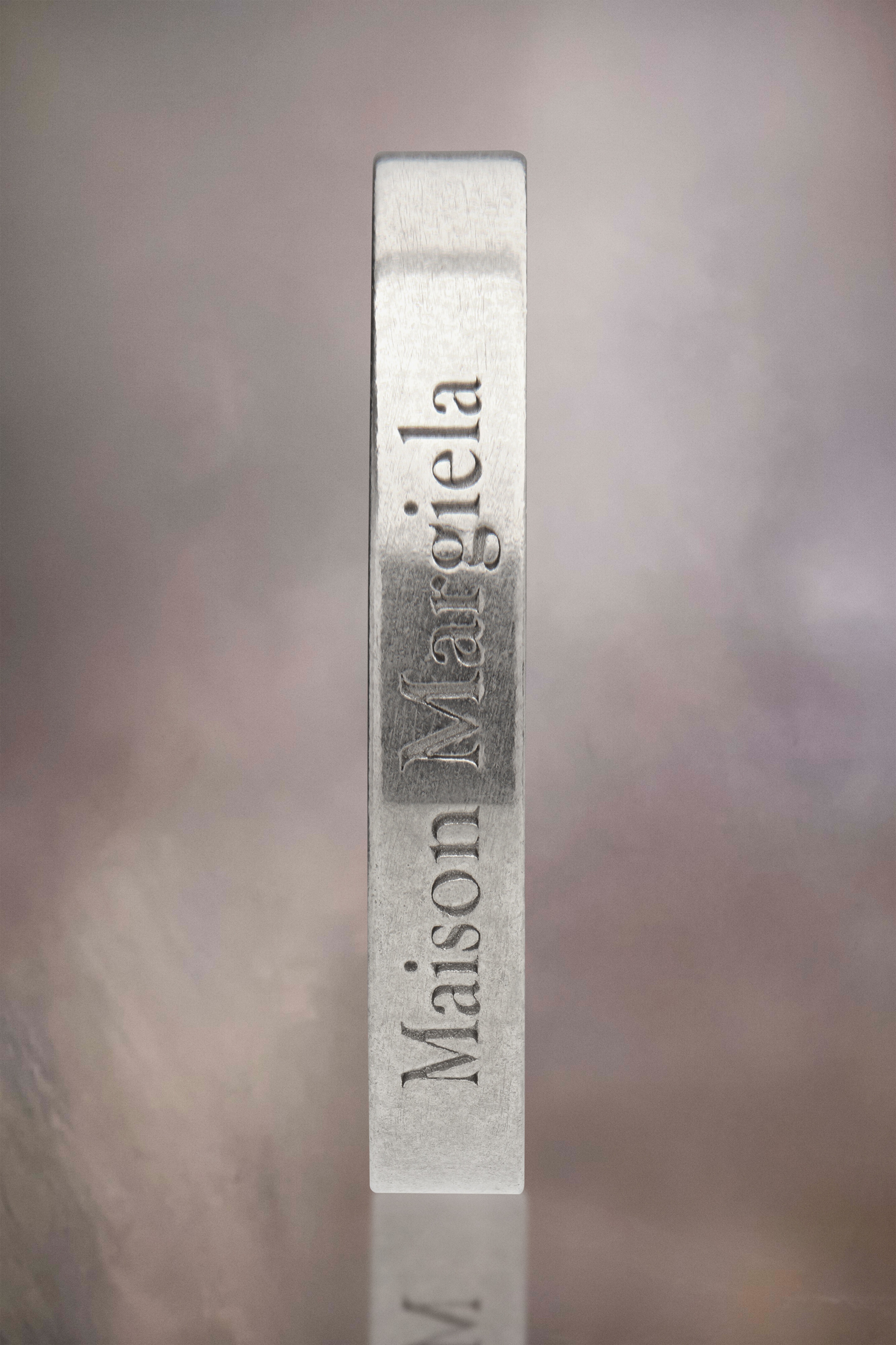 The 3mm ring with yellow gold plating, with an engraved Maison Margiela logo. Product Details Item ID SM1UQ0080SV0158951 Composition: 100% Silver Palladio burattato Tone on tone engraved brand logo Avoid salt, chlorine water and aggressive liquid Made in Italy Width: 3 mm