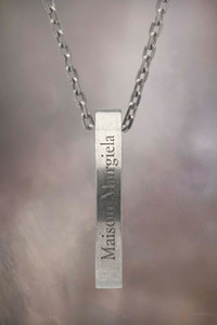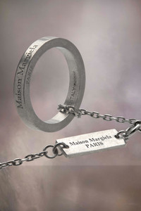 The ring with yellow gold plating, with an engraved Maison Margiela logo, hangs as a pendant on a slim chain. Product Details Item ID SM1UU0035SV0158951 Composition: 100% Silver Palladio burattato Sterling silver logo pendant ring necklace Avoid salt, chlorine water and aggressive liquid Made in Italy Width: 3 mm Necklace length: 60cm/23 in + 3 cm/1,1 in adjusTabilty