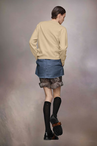 The crew-neck sweater comes in Scottish cashmere-cotton yarn with a pilling treatment to give a lived-in aesthetic as part of the Maison’s DNA. Maison Margiela’s signature Four stitches appear at the back; the opposite of a label. 12 gauge. Product Details Item ID S67HL0010M13031106M Composition: 78% cashmere, 22% cotton Brushed cashmere jumper Gauge 12 Crewneck Ribbed trims Four stitches at the back Made in Italy