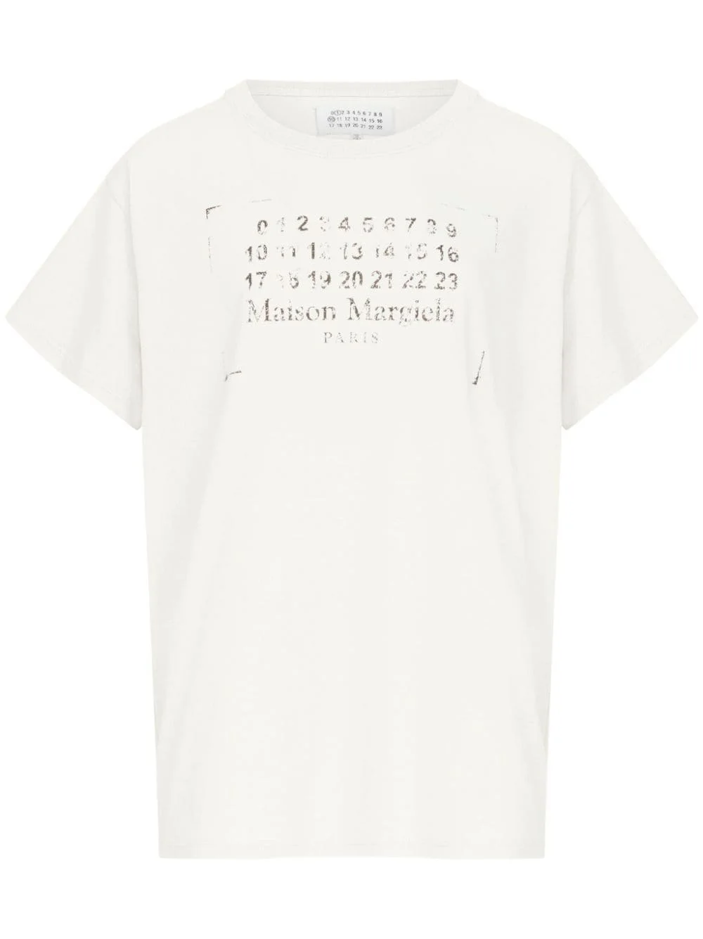 logo-print cotton T-shirt Highlights - Beige - Cotton - Signature four-stitch logo - Embroidered logo - Logo print to the front - Crew neck - Short sleeves - Straight hem - When buying this unisex item, keep in mind that it is graded in standard men's sizing. Made in Italy Composition Cotton 100%