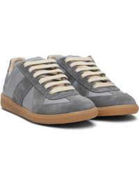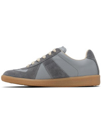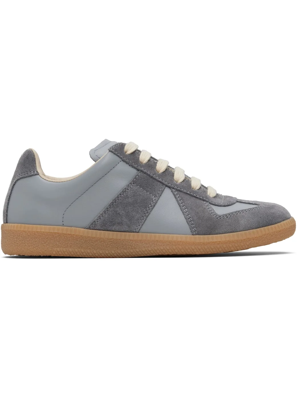 Low-top buffed nappa calfskin and calfskin suede sneakers. · Lace-up closure · Logo patch at padded tongue · Padded collar · White stitch at heel collar · Buffed leather and plain-woven lining · Treaded rubber sole Supplier color: Ghost Gray Upper: calfskin. Sole: rubber. Made in Italy 261168M237005