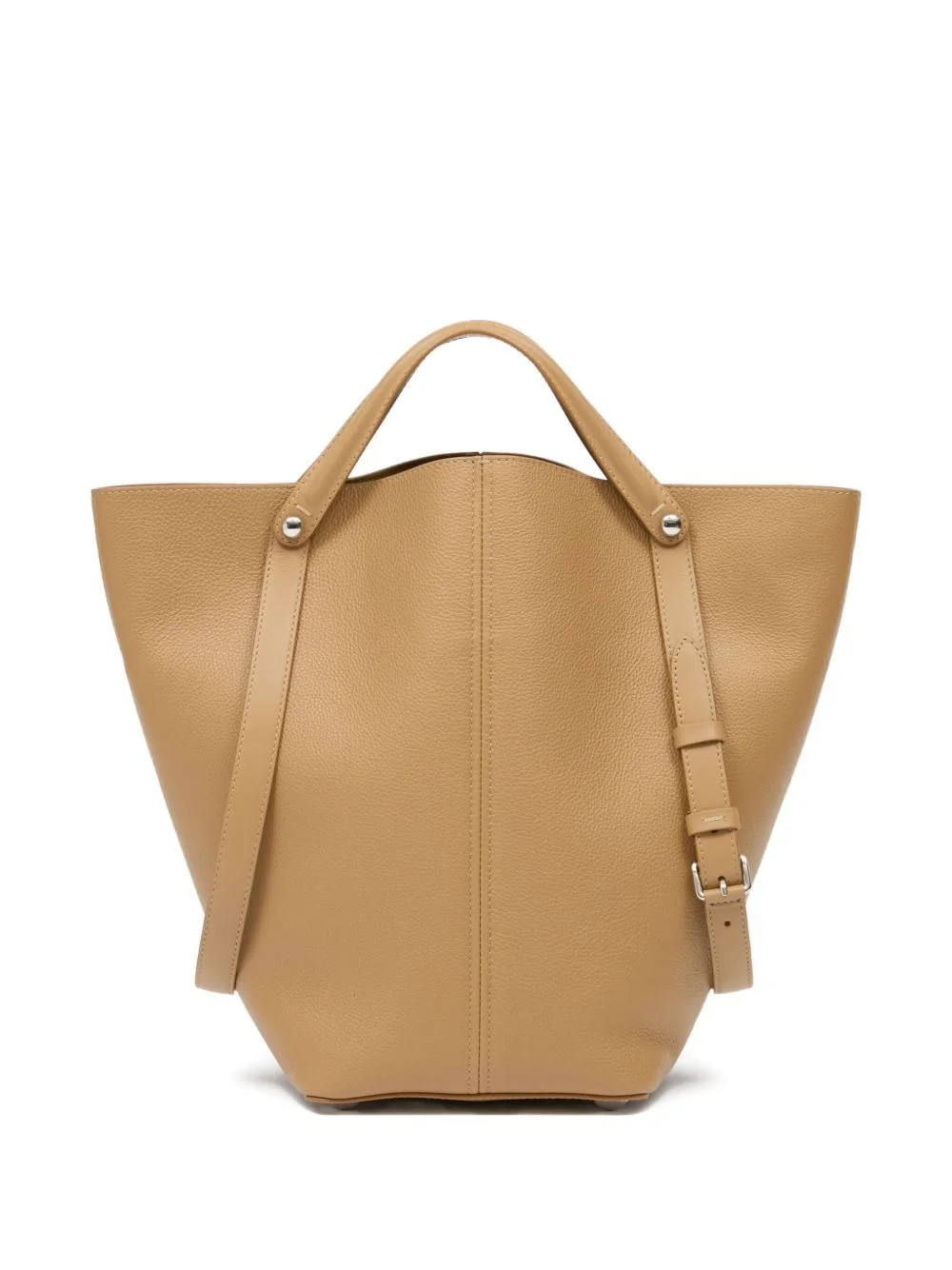 medium Dress-Age tote bag Highlights - Light brown - Pebbled finish - Trapezoid shape - Dual-wear strap - Studded base - Four stitches at the back Made in Italy Composition Outer: Calf Leather 100% Lining: Goat Skin 100% SIZE & FIT Measurement DEPTH 6.69 in(17 cm) HANDLE 2.36 in(6 cm) HEIGHT 9.84 in(25 cm) WIDTH 16.53 in(42 cm)