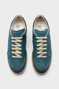 Crafted in raw-edge denim, these Replica sneakers are defined by exposed threads that trace the outline of each seam. A faded side panel acts as reference to the Maison’s Memory of technique, highlighting traces of past construction. The Maison's iconic Replica sneakers are inspired by Austrian sports shoes from the seventies. Details on the Replica pairs are continually reworked in line with the season's inspirations. Product Details Item ID S97WS0088P7577T6033 Upper: 100% Cotton Contrast: 100% Calf Leather Lining: 100% Cotton Inside: 100% Calf Leather Sole: 100% Rubber Bleached denim sneakers Panel detailing Textured gum sole White stitching at the back Made in Italy