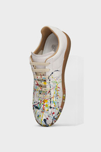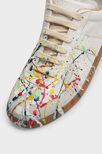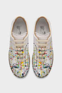 The Replica sneakers in nubuck leather and velour featuring a paint splatter design. The Maison's iconic Replica sneakers are inspired by Austrian sports shoes from the seventies. Details on the Replica pairs are continually reworked in line with the season's inspirations. Product Details Item ID S57WS0240P1892961 Upper: 100% Calf leather Contrast: 100% Calf leather Lining: 100% Cotton Sole: 100% Rubber Logo label on the tab White stitching at the back Handmade color treatment Internal Replica label Internal elastic All-over logo insole Gently rub using a microfiber cloth with softner to clean Made in Italy A digital certificate provided by the Aura Blockchain Consortium guarantees the authenticity of this product. Discover more on auraluxuryblockchain.com/#about