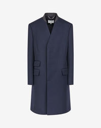 Collarless minimal tailored coat in hard-wearing wool twill, from the AW20 collection, with Décortiqué detail at the neck. It features hidden buttons to close, dart details and flap pockets with work-in-progress details and the 'Memory of' cuffs. It has a single vent at the back and the Maison's four-stitches moniker. Made in Italy. Item details 100% Wool Solid color Long sleeves V-neck Three pockets Button closing Fully lined Rear slit Three internal pockets Contains non-textile parts of animal origin