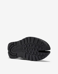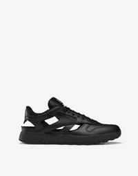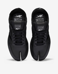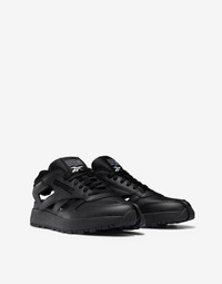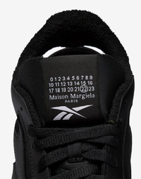 Reebok classic low-top runner in leather from 1985, reimagined in a couture variation with the Maison's signature Décortiqué aesthetic. Cut-out detailing elevates the "Anonimity of the lining" concept by revealing the inner lining and is reminiscent of a cage-like shape. Its split toe is inspired by the iconic Tabi shoe from 1988. The sneaker features dual logos on the tongue, with the Reebok signature on the side paneling and rear, while the hallmark Margiela stitch moniker adorns the back. Tonal Velcro closures and laces complete the style. Item details 100% Bovine leather Solid color Brand logo Round toeline Rubber sole Fully lined Laces