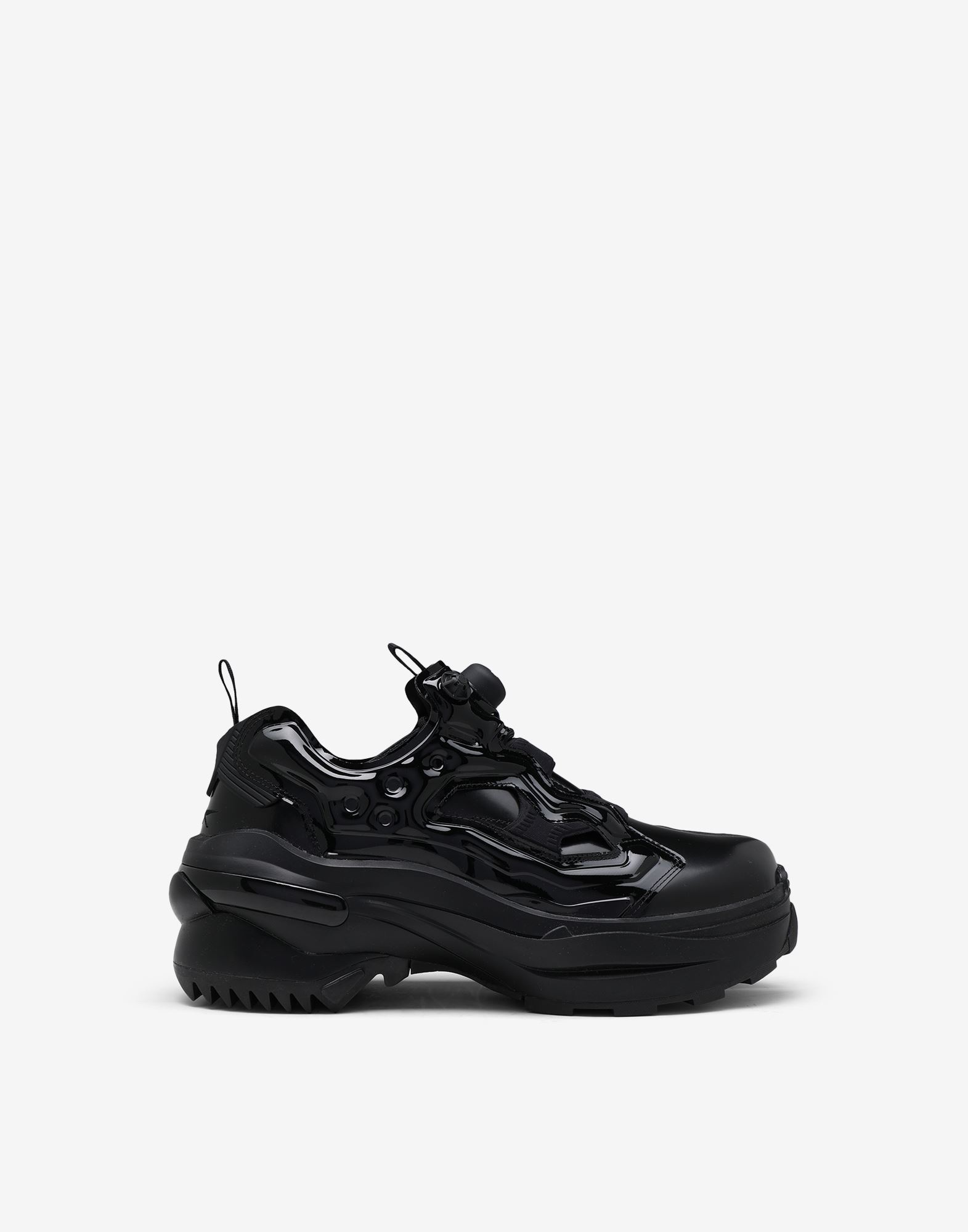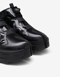 Colour block sneakers designed in collaboration with Reebok. The Maison's signature Tabi split-toe shape from 1988 unites with Reebok's trailblazing sneaker from 1994, the Instapump Fury. The pair come in a faux leather finish with a statement rubber sole – a Hexalite midsole provides cushioning and shock absorption and a Graphlite arch bridge lends flexibility and lightweight support. The Instapump foot chamber creates the maximum customised fit with a laceless construction. Featuring an architectural silhouette and utilitarian pull tab. Item details 100% Bovine leather, Polyurethane, Polyester Varnished effect Logo Solid color Laces Flatform Round toeline Rubber sole