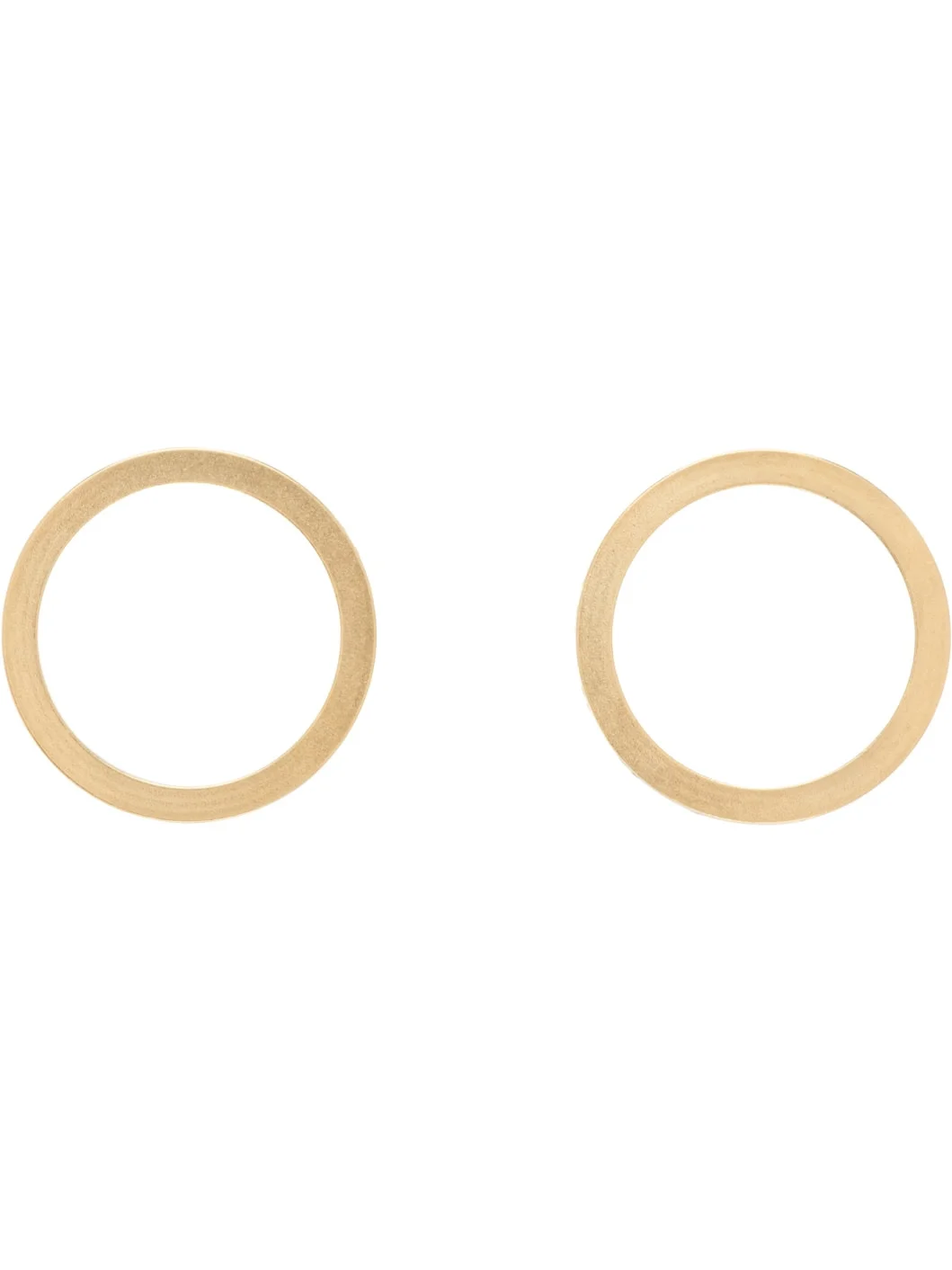 Pair of stud earrings in gold-tone sterling silver. · Cutout at face · Logo engraved at sides · Post-stud fastening · D0.75" Supplier color: Yellow gold plating burattato 925 sterling silver. Made in Italy 252168M144003