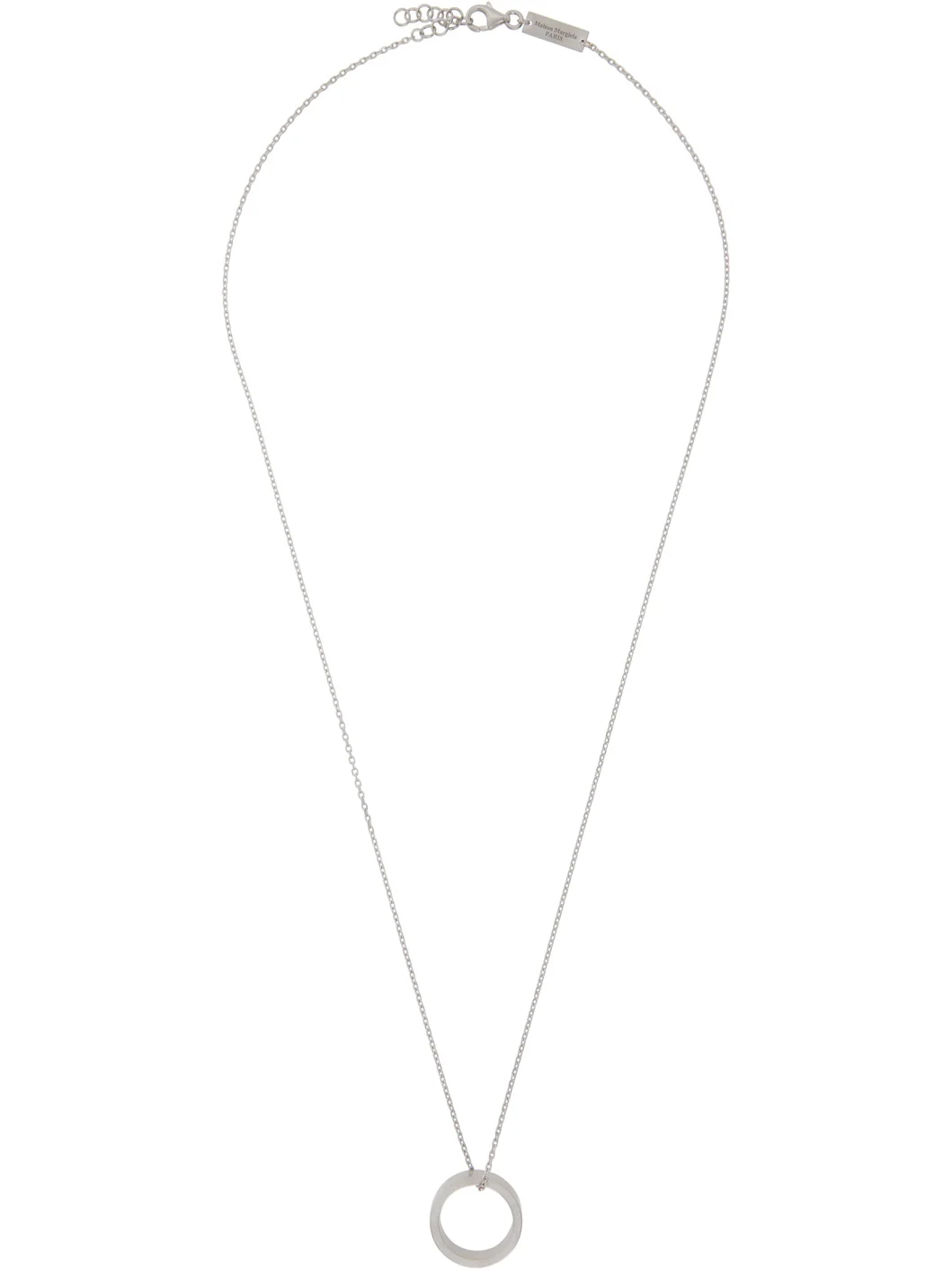 Cable chain necklace in sterling silver. · Logo-engraved ring pendant · Logo plaque at adjustable lobster-clasp fastening · L25.5" Supplier color: Semi matt silver 925 sterling silver. Made in Italy 261168M145002