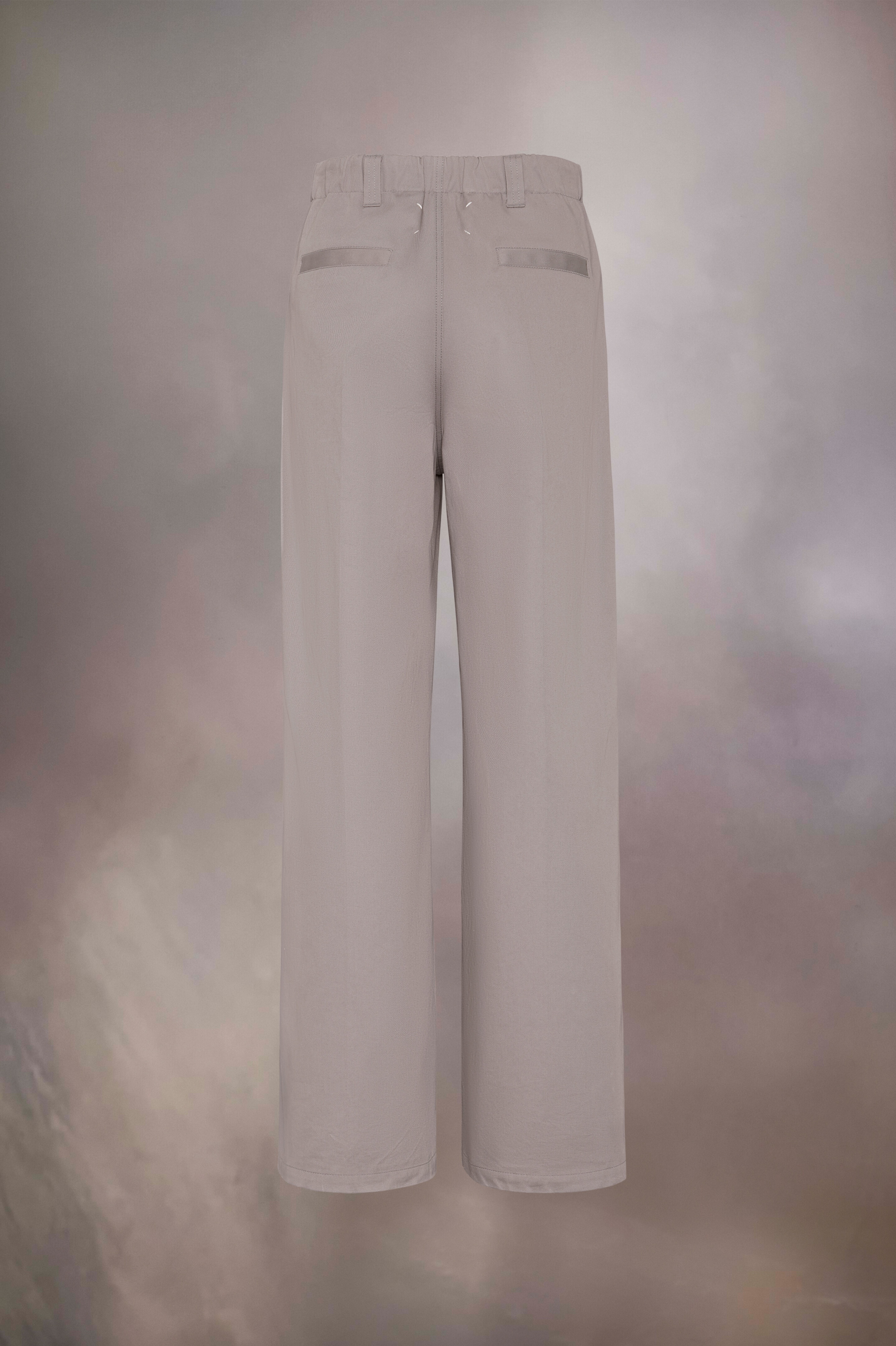 The cotton gabardine trousers feature a wide-leg silhouetteFor a relaxed take. The front is complete with pleats and the back of the waist is elasticated. They are finished with belt loops and the Margiela hook closure. Maison Margiela's signature, the four stitches, appear at the back; the opposite of a label. Product Details Item ID S50KA0680M35344816 Primary Fabric: 100% Cotton Lining: 65% Polyester 35% Cotton Compact gabardine trousers High waist Belt loops Wide leg Front pleats Horn button closure:Maison Margiela hook Side pockets Four stitches at the back Made in Italy