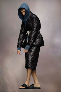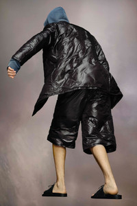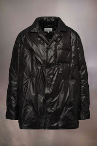 Created in lightweight padded nylon, the jacket has a creased finish with notched collar, buttons and a chest pocket. Maison Margiela's signature, the four stitches, appear at the back; the opposite of a label. String is used for styling only. The model is 186cm tall. Model wears size 46.