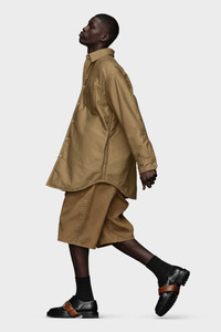 Created in satin cotton, the shirt is oversized and padded. It comes complete with buttoned placket, collar and chest patch pocket. Maison Margiela's signature, the Four stitches, appear at the back; the opposite of a label. Product Details Item ID S50DT0046M35217726 Composition: 100% cotton Padding: 55% polyethylene terephthalate, 40% polyester, 5% nylon Lining: 100% viscose-rayon Cotton satin padded shirt Pointed collar Patch pocket Button closure Buttoned cuffs Curved hem Side slits Four stitches at the back Made in Italy Model is 6'1" tall and wears a size 46.