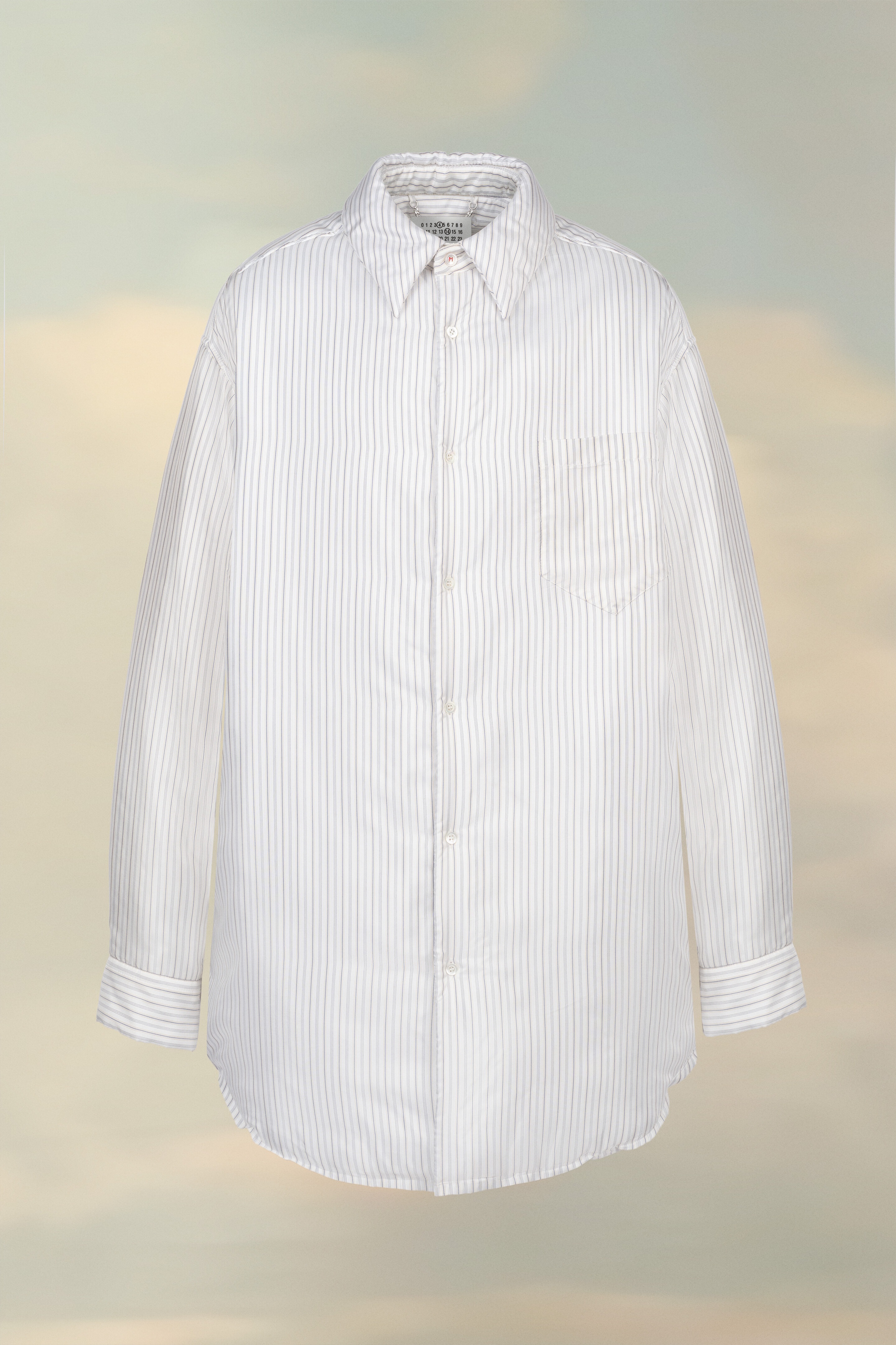 This long-sleeved striped shirt with a buttoned placket, classic collar and chest pocket creates a new silhouette with its padded design. Product Details Item ID SI1DL0009S49994001F Details Composition: 57% Acetate 43% Viscose - Lining: 57% Acetate 43% Viscose - Padding: 100% Polyester