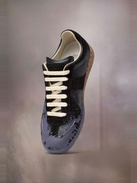 The Replica sneakers in calfskin and suede featuring a paint splatter design. The back features a single white stitch showing the hand of Maison Margiela. The Maison's iconic Replica sneakers are inspired by Austrian sports shoes from the seventies. Details on the Replica pairs are continually reworked in line with the season's inspirations. Product Details Item ID S57WS0481P6230H0A65 Upper: 100% calf leather Contrast: 100% calf leather Lining: 100% cotton Sole: 100% rubber Leather sneakers with handmade treatment at the front Logo label on the tab White stitching at the back Internal Replica label Internal elastic All-over logo insole Leather part: gently rub using a microfiber cloth with softner to clean Suede: gently brush with a delicate brush Made in Italy A digital certificate provided by the Aura Blockchain Consortium guarantees the authenticity of this product. Discover more on auraluxuryblockchain.com/#about