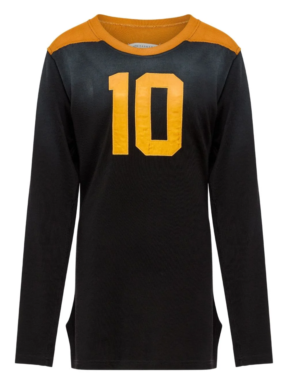 panelled long-sleeve T-shirt Highlights - Black - Contrasting orange panel - Front number '10' print - Round neck - Side slits Made in Italy Composition Viscose 53%, Cotton 47% Washing instructions Read Manufacturer Guidelines