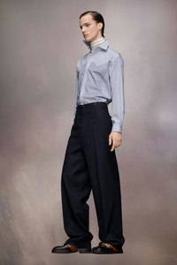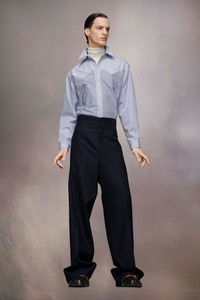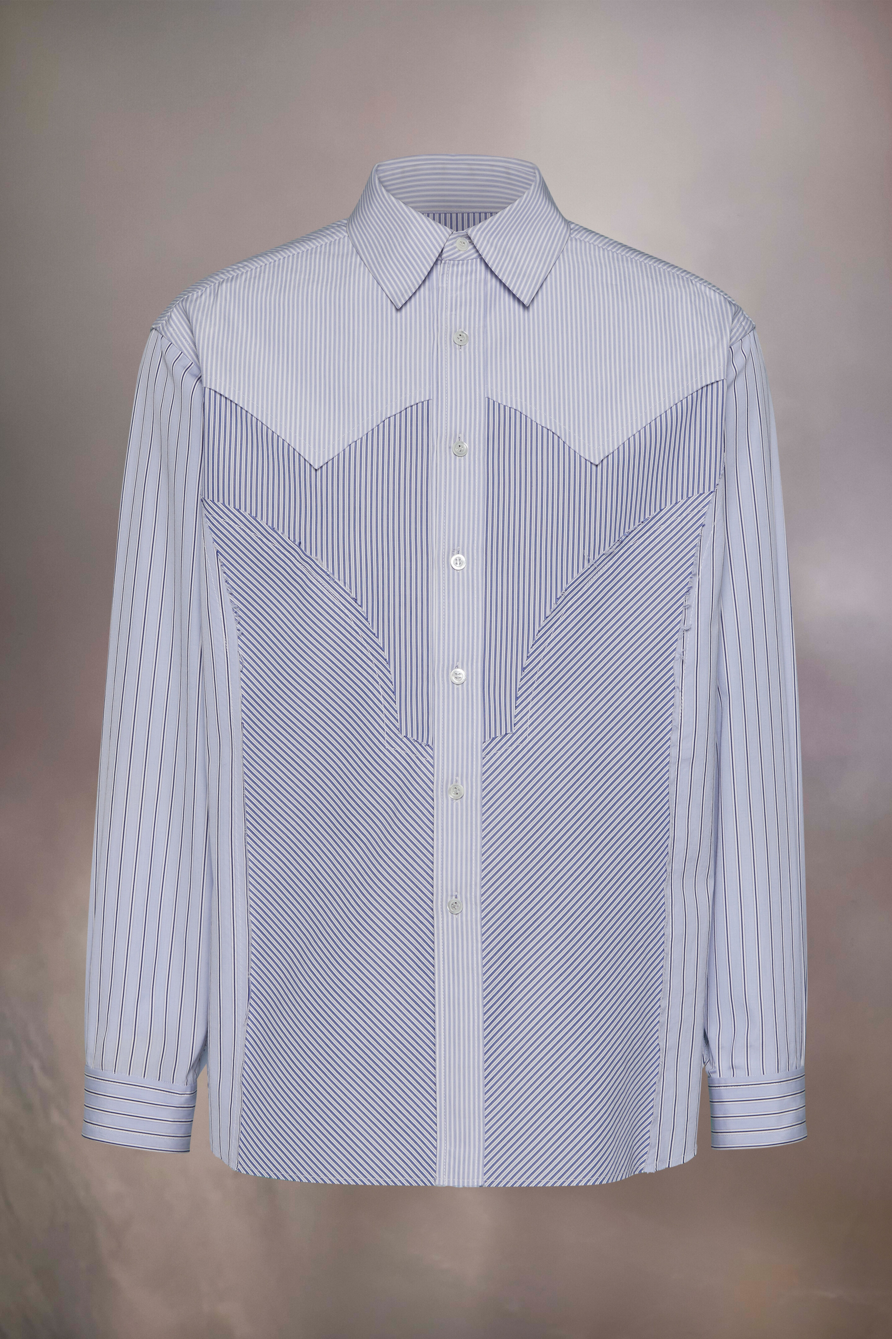 The cotton shirt features four patchwork stripe patterns and yoke detail. It has a raw-edge curved hem and classic collar with buttoned placket. Maison Margiela's signature, the Four stitches, appear at the back; the opposite of a label. Product Details Item ID S50DT0037MTN025961 Composition: 100% cotton Cotton classic stripe shirt Pointed collar Mother of pearl button closure Buttoned cuffs Raw-edge curved hem Side slits Four stitches at the back Made in Italy Model is 6'2" tall and wears a size 39.