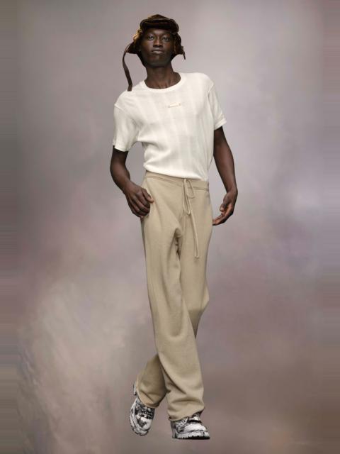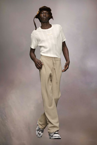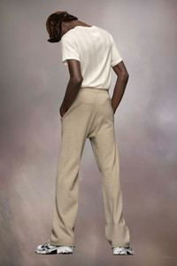 The tracksuit trousers are crafted from a soft cashmere wool blend. Designed as loungewear, they feature a ribbed waistband with extra-long drawstring for an adjustable fit. The trousers are designed with side pockets and a straight-leg, lightly pooling at the floor for a relaxed take. Maison Margiela's signature, the four stitches, appear at the back; the opposite of a label. Product Details Item ID S50KA0666M13095115M Primary Fabric: 70% Wool 30% Cashmere Pocket Lining: 70% Wool 30% Cashmere Cashmere wool trousers Regular waist with drawstring Straight leg Raw-edge hem Four stitches at the back Model is 185 cm tall and wears a size 46.