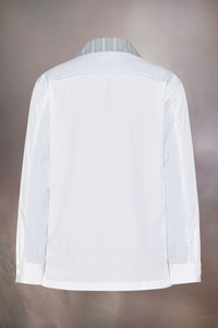 Crafted from plain and contrast pinstripe cotton, the long-sleeve shirt features multi pockets including an asymmetric chest pocket. The buttoned placket is met with a notched collar and straight hem. Maison Margiela's signature, the four stitches, appear at the back; the opposite of a label. Product Details Item ID S50DT0056MTN074961 Primary Fabric: 89% Cotton 11% Polyamide-Nylon Secondary Fabric: 100% Cotton Third Fabric: 100% Cotton Cotton shirt Button closure Patch pockets Buttoned cuffs Four stitches at the back Made in Italy