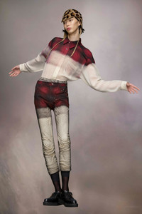 The shirt comes in a check print cotton gabardine, in collaboration with Pendleton. The brand's emblematic design is spliced with a plain lower half, giving a degraded look as if a printer has run out of ink. Alongside the Pendleton logo label on the placket, Maison Margiela’s signature, the Four stitches, appear at the back; the opposite of a label. Product Details Item ID S50DT0027M35009001S Primary fabric: 85% wool, 15% nylon Lining: 100% viscose-rayon Pendleton heritage check print shirt Mother of pearl button closure Patch pocket Curved hem Side slits Four stitches at the back Made in Italy Model is 187cm tall and wears a size 39.