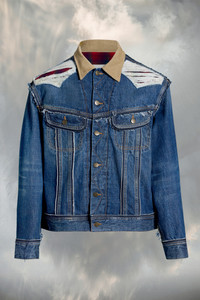 With Pendleton check wool lining and a logo label at the back, the denim jacket features a Décortiqué Rorschach yoke with destroyed details. Contrast stitching appears throughout with a buttoned placket, contrast corduroy collar, adjustable waist tabs and buttoned chest pockets. Maison Margiela’s signature, the Four stitches, appear at the back; the opposite of a label. Product Details Item ID S67AM0061STZ091962 COED Fall Winter 2023 Outer: 100% Cotton Lining: 100% Pendleton check wool Corduroy collar Destroyed details Décortiqué details Contrasting seams Button closure Two button closure flap pockets Button closure cuffs Adjustable waist tabs Four stitches at the back Pendleton label at the back Made in Italy Model is 6'2" tall and wears a size 46.