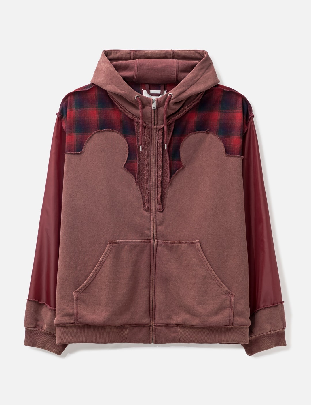 - Maison Margiela - Pendleton Yoke Hoodie - Vintage cotton fabric - Contrasting nylon sleeves - Pendleton wool yoke panel - Zip closure - Front pockets - Ribbed cuffs and hem - Fully lined in Pendleton wool - Color: Burgundy - Material: 100% Cotton; 100% Nylon; 100% Wool - See more Hoodies and Clothing SIZING - Model wears size M - Model measures: Height 187cm, Chest 36”/91cm, Waist 29”/74cm, Hip 37”/94cm
